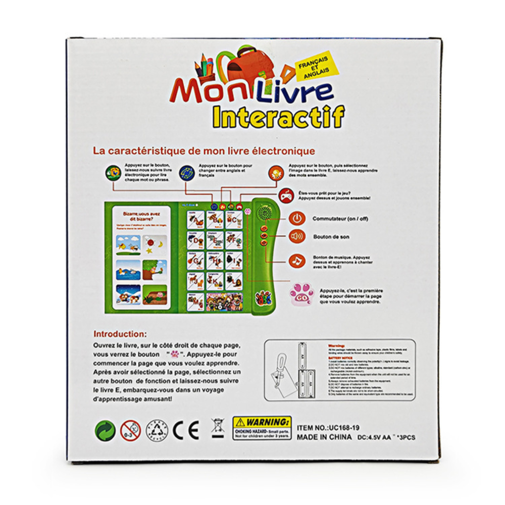 Livre électronique bilingue Français et Anglais - Jouets d'apprentissage interactifs pour enfants d'âge préscolaire