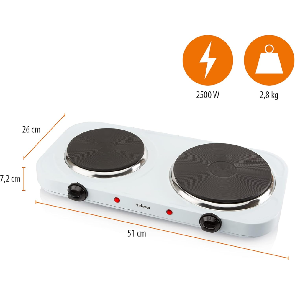 La plaque de cuisson compacte est la plaque de cuisson électrique mobile idéale. Elle peut être utilisée dans les résidences universitaires ou au camping pour faire frire la prise du jour après la pêche. Facile à utiliser, elle convient donc à tout le monde. La plaque a 5 niveaux de puissance. Dès qu'une plaque commence à chauffer, un témoin lumineux rouge s'allume pour indiquer clairement quelle plaque de cuisson est chaude.