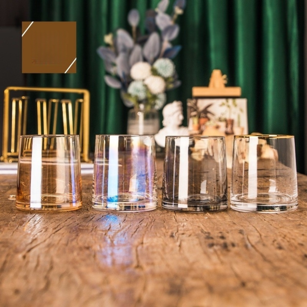 Lot de 6 verres à Whisky transparents de couleurs or, cocktails, eau
